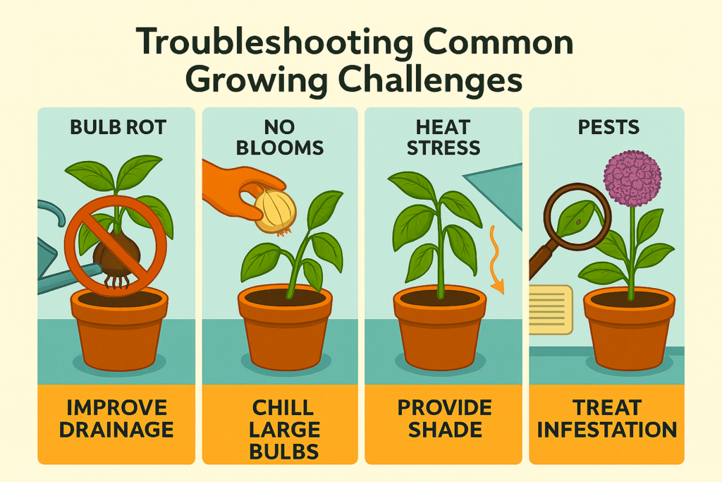 Even experienced gardeners face challenges when growing specialty bulbs like Allium Insubricum. The most common problem I encounter is bulb rot, usually caused by poor drainage or overwatering. If you notice soft, mushy bulbs, improve drainage immediately and reduce watering frequency.